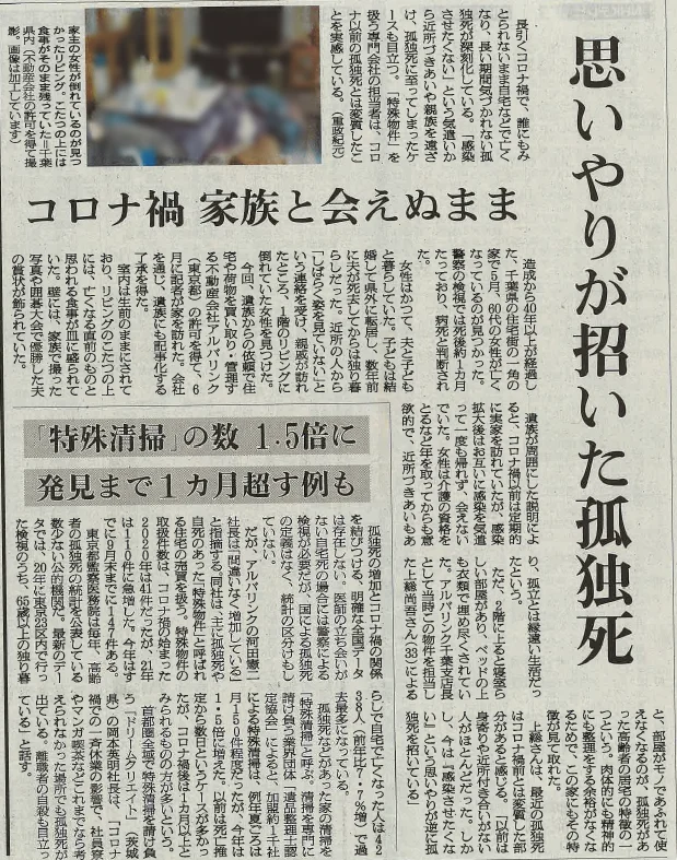 訳あり物件としての孤独死の事故物件で河田社長がインタビューに答えています。